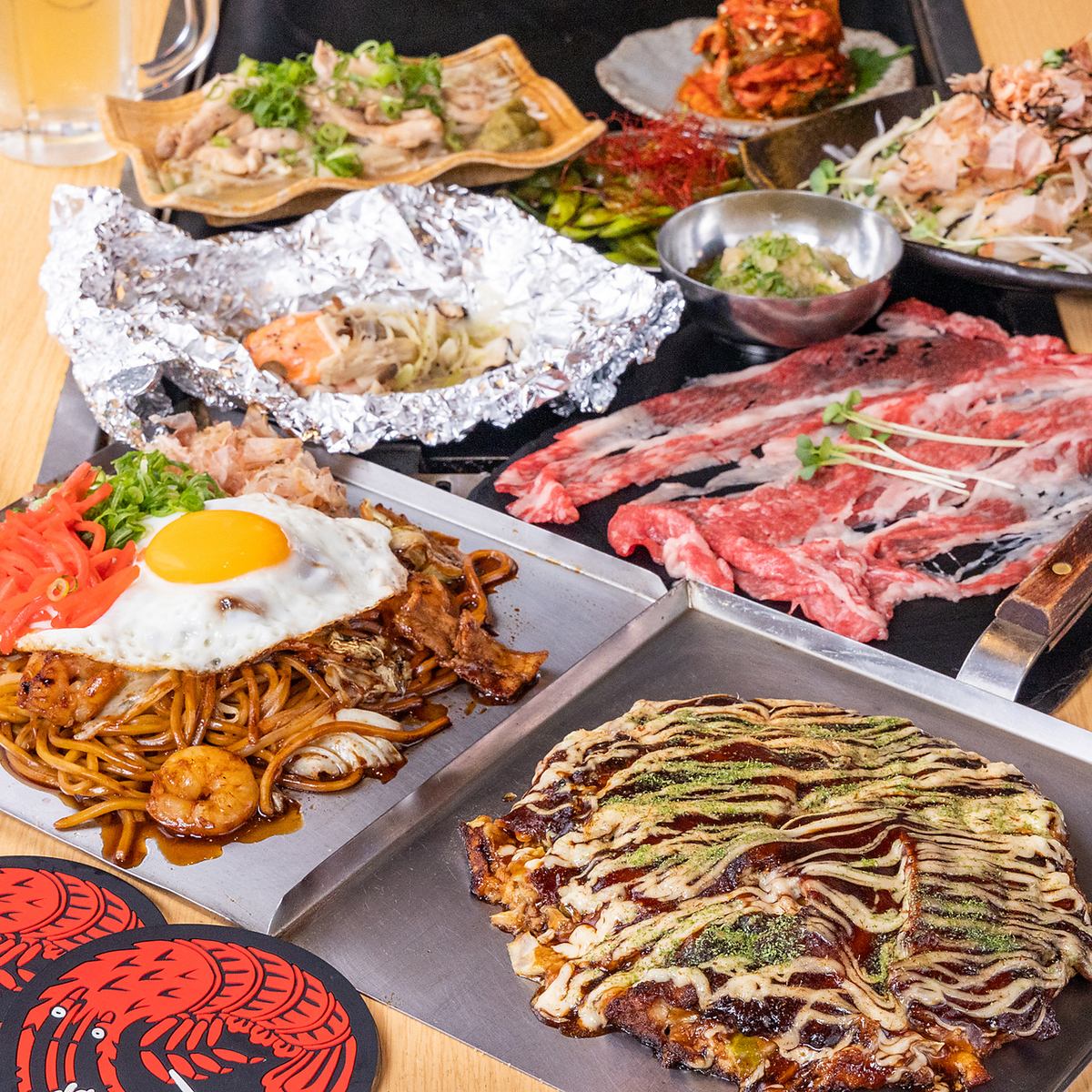 ★90分飲み放題付★【選べるお好み焼き】満喫コース4300円(税込) ご予約で黒毛和牛プレゼント♪
